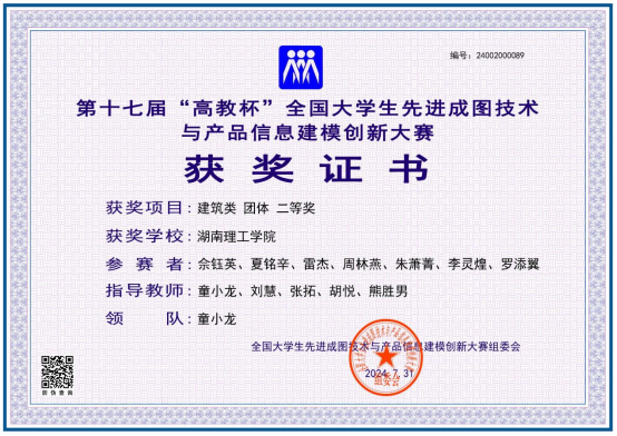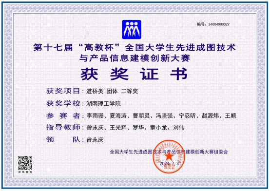 7月26日-30日,第十七届全国大学生先进成图技术与产品信息建模创新大赛全国总决赛在贵州大学举行。永利皇宫官方网站师生在此次大赛中取得良好成绩,经过校赛初赛、省赛选拔赛,以及暑期的留校培训,永利皇宫官方网站代表队荣获建筑赛道团体二等奖,个人二等奖4项、三等奖5项;获道桥赛道团体二等奖,个人一等奖1项,二等奖3项,三等奖4项。