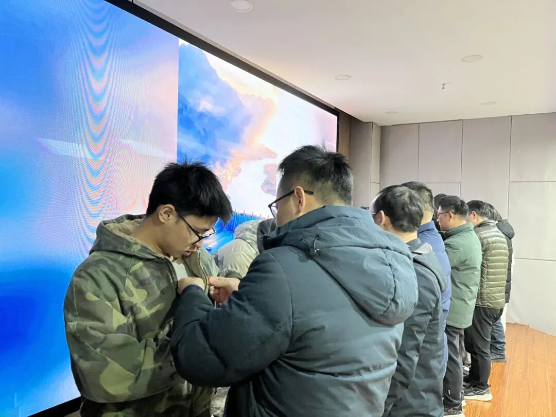 佩戴党徽环节随即展开,党员教师代表分两批为18名新党员佩戴党徽。熠熠生辉的党徽,既是党员身份的标识,更象征着新党员的责任与担当,时刻提醒他们以党员标准严格要求自己。