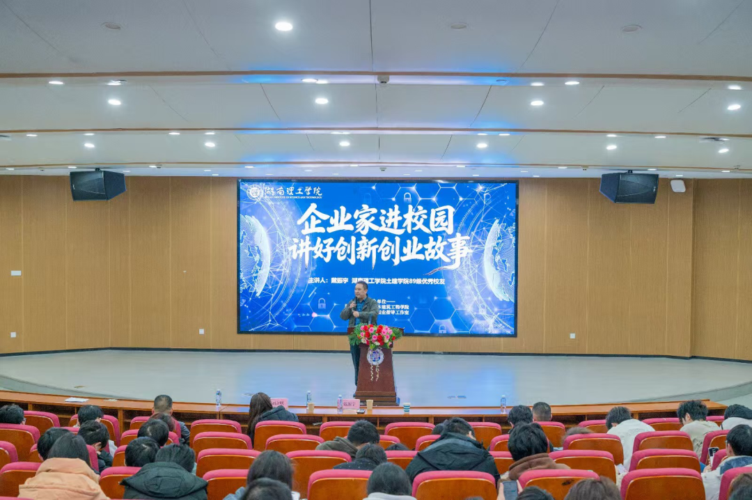 12月24日,“湖鲤”大学生创业工作室联合永利皇宫官方网站,紧扣“企业家进校园讲好创新创业故事”主题,特邀1989级校友、湖南兴业工程项目管理有限公司董事长戴振宇重返母校,开展以“准备好,别等待”为主题的创业分享会。学院党委书记钟铭金主持本次活动,三百余名土建专业学子到场聆听、交流学习。