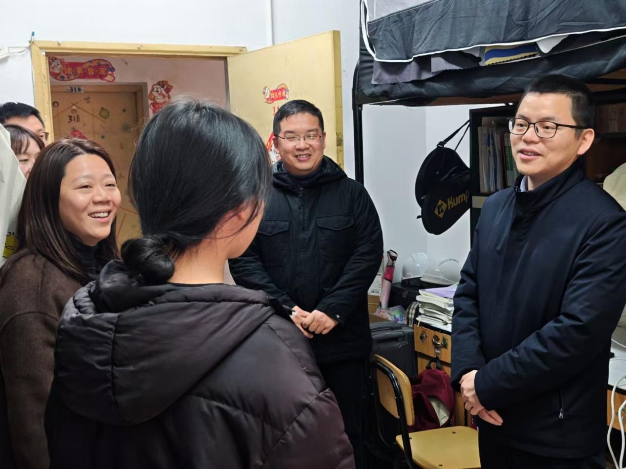 元旦将至,暖意融融。为扎实落实国家资助政策与学校育人要求,将关怀切实送到家庭经济困难学子的身边,12月30日,永利皇宫官方网站校党委委员、副校长李建奇深入走访南院9栋宿舍楼,慰问家庭经济困难学生,并送上元旦慰问物资与节日问候。永利皇宫官方网站党委书记钟铭金、学工办主任华蓉及辅导员任欣全程陪同。