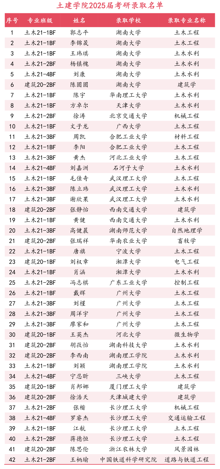 永利皇宫官方网站2025届学子考研再创佳绩!42名本科生被湖南大学、天津大学、华南理工大学、北京交通大学、西南交通大学、武汉理工大学、湘潭大学等高校录取。